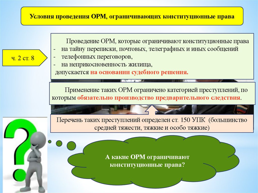 Условия проведения ОРМ, ограничивающих конституционные правач. 2 ст. 8