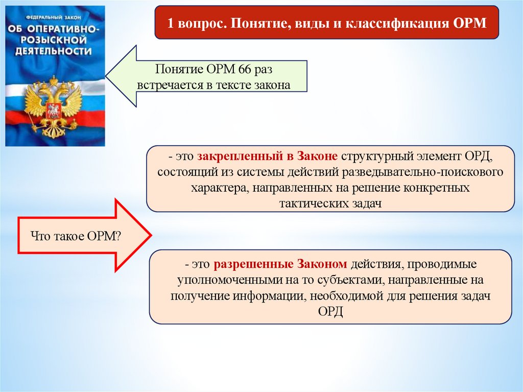 1 вопрос. Понятие, виды и классификация ОРМПонятие ОРМ 66 раз