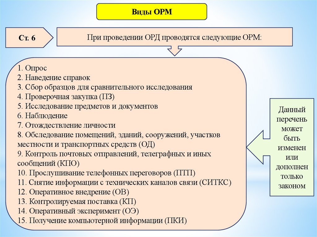 Правовая основа применения СТС и СХВпри проведении ОРМ