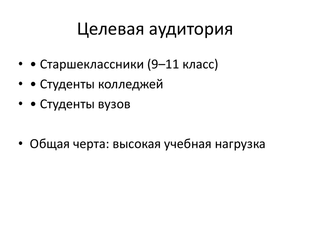 Целевая аудитория• • Старшеклассники (9–11 класс)
