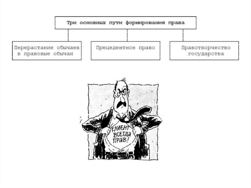 Право - более сложный регулятор, чем обычаи, так как, кроме запретов, в нем используются и