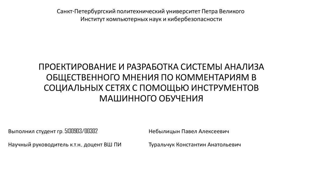 Санкт-Петербургский политехнический университет Петра ВеликогоИнститут компьютерных наук и кибербезопасности