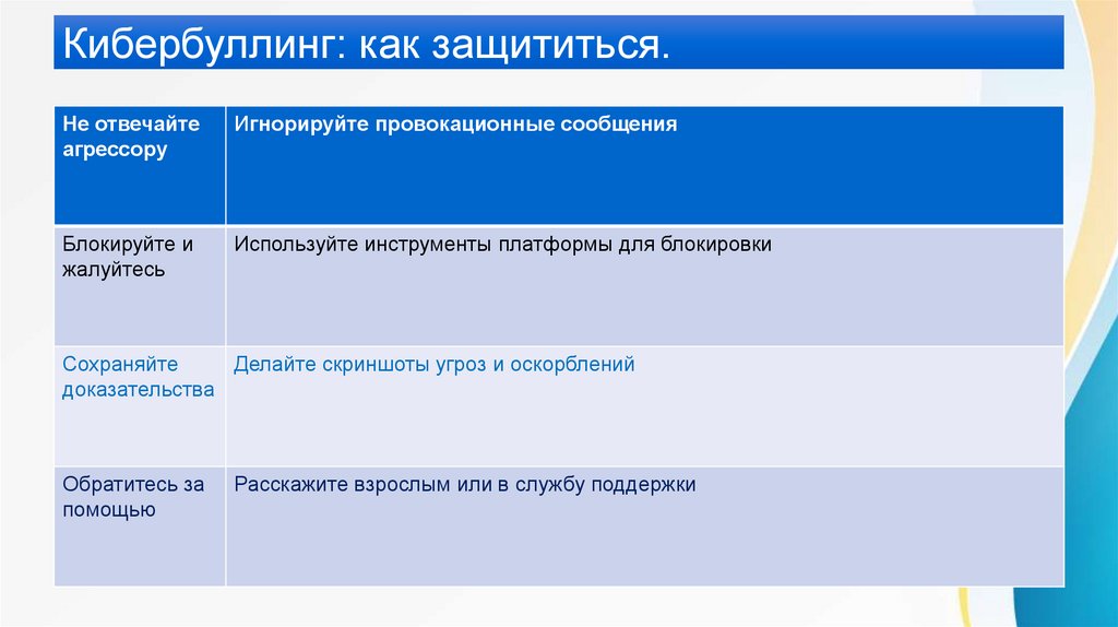Кибербуллинг: как защититься.Не отвечайте