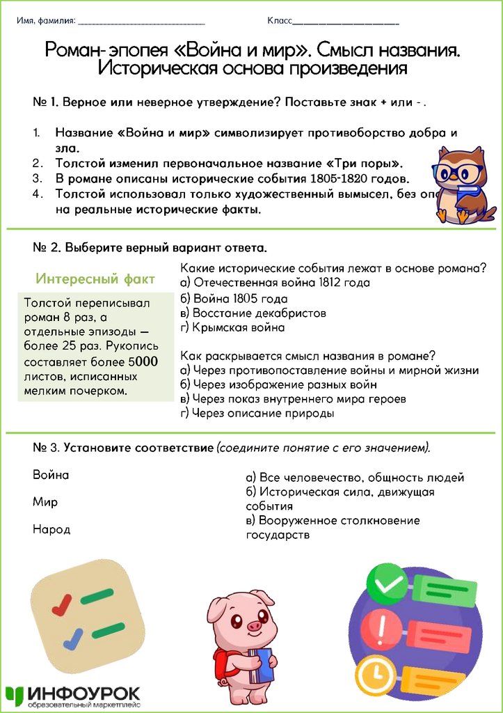 Роман-эпопея «Война и мир». Смысл названия. Истори