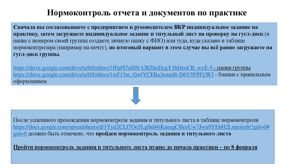 Пройти нормоконтроль задания и титульного листа нужно до начала практики – по 8 февраля