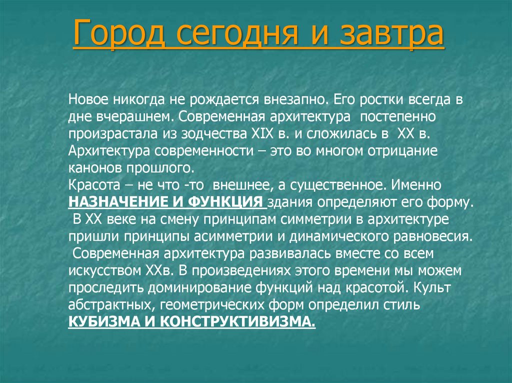 Город сегодня и завтраНовое никогда не рождается внезапно. Его ростки всегда в