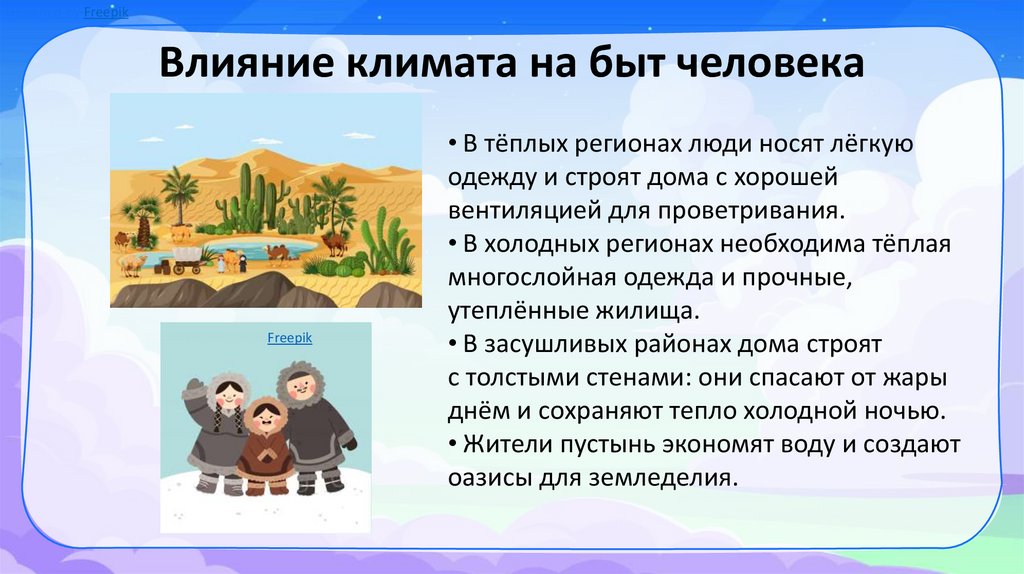 Designed by FreepikВлияние климата на быт человека