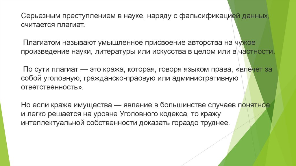 Серьезным преступлением в науке, наряду с фальсификацией данных,считается плагиат.