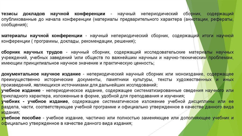 включаться также и другие типы научных публикаций: доклады на конференциях, монографии,
