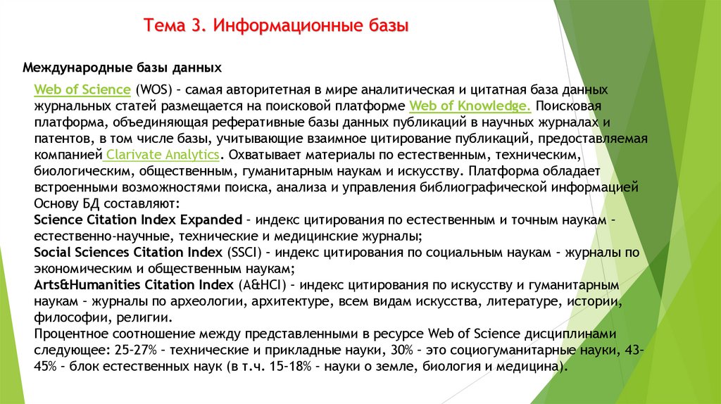 международные базы данных научного цитирования, такие как Web of Science или Scopus. Кроме