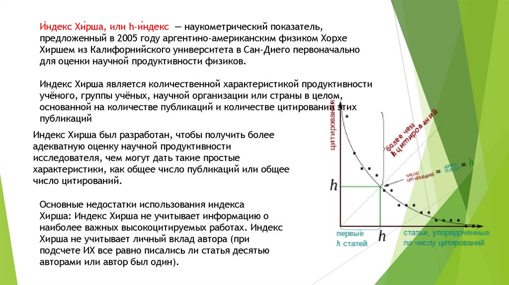 И́ндекс Хи́рша, или h-и́ндекс — наукометрический показатель,предложенный в 2005 году аргентино-американским физиком Хорхе