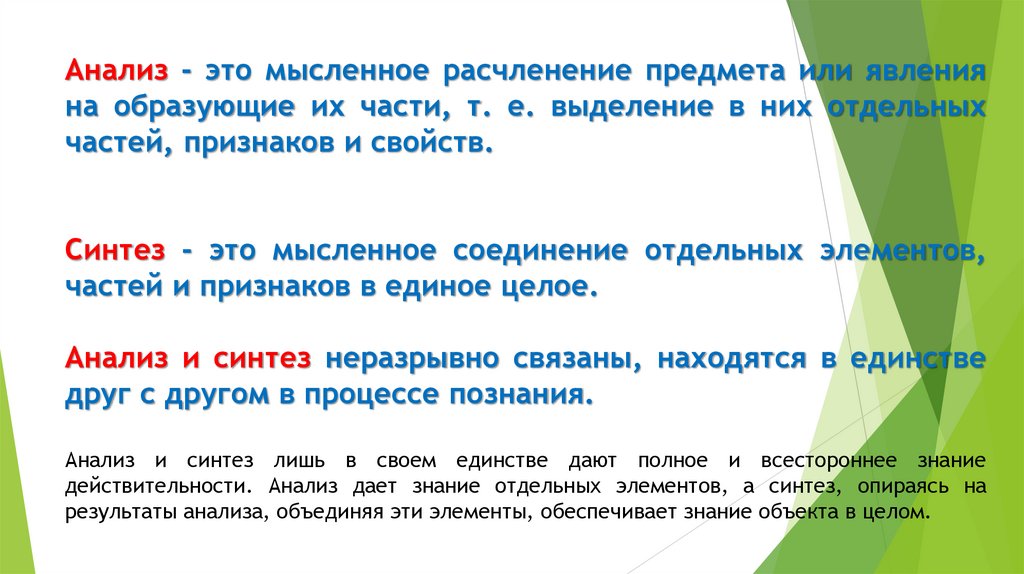 Анализ и синтез лишь в своем единстве дают полное и всестороннее знание