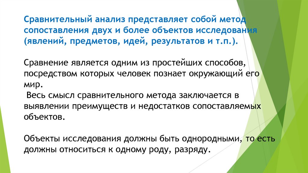 Сравнительный анализ представляет собой методсопоставления двух и более объектов исследования