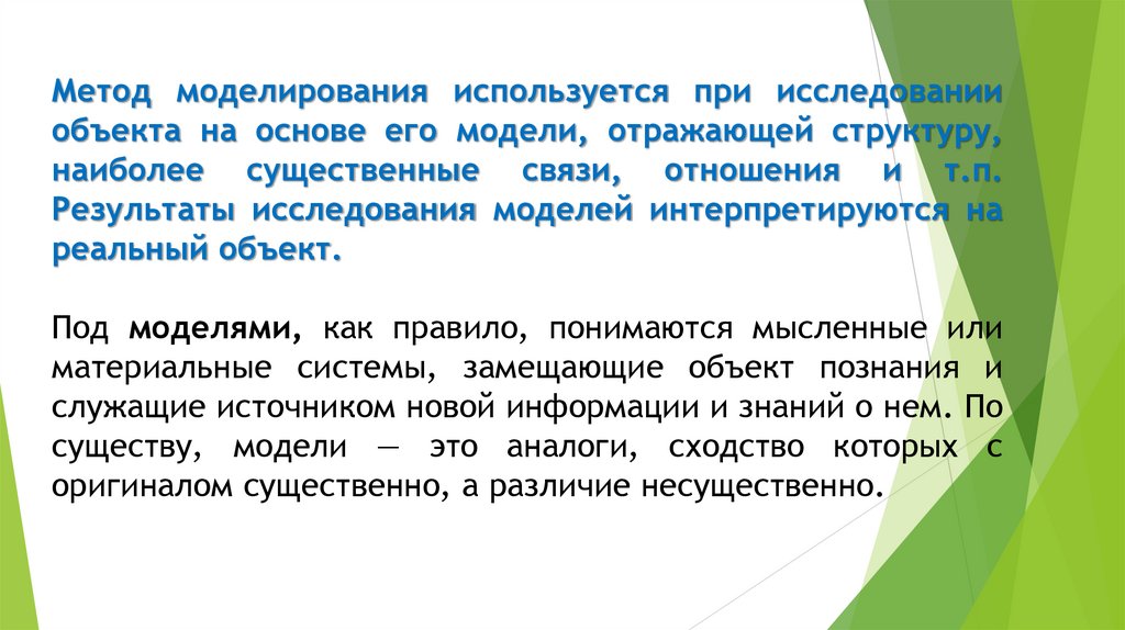 Метод моделирования используется при исследованииобъекта на основе его модели, отражающей структуру,