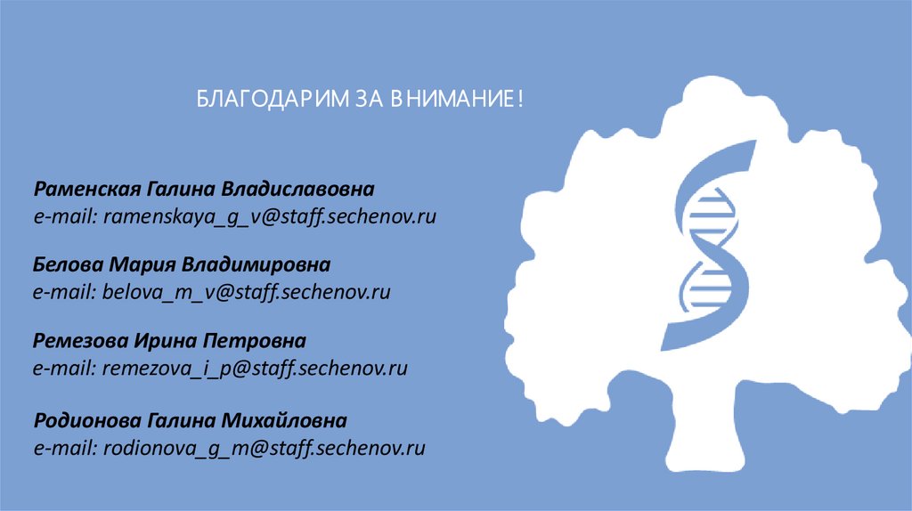 Раменская Галина Владиславовнаe-mail: ramenskaya_g_v@staff.sechenov.ru