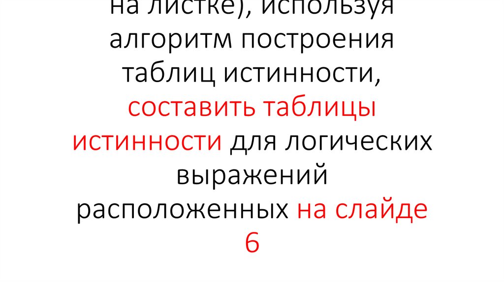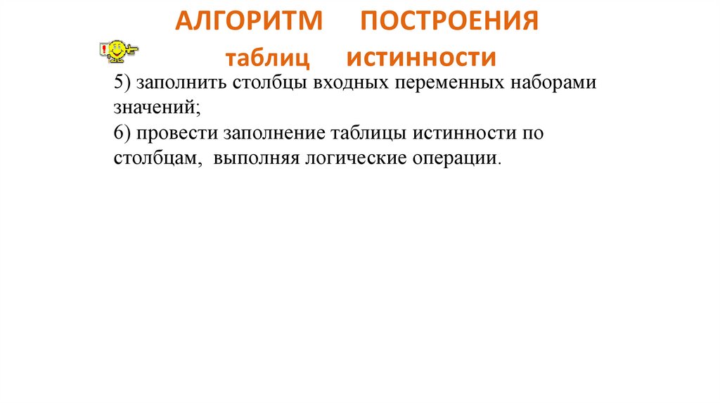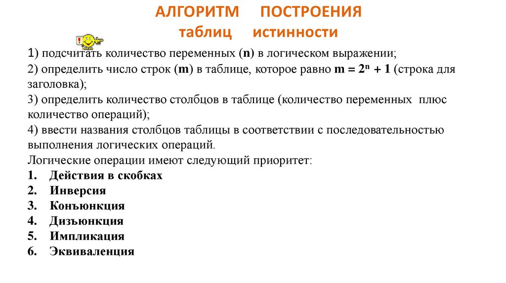АЛГОРИТМ ПОСТРОЕНИЯтаблиц истинности