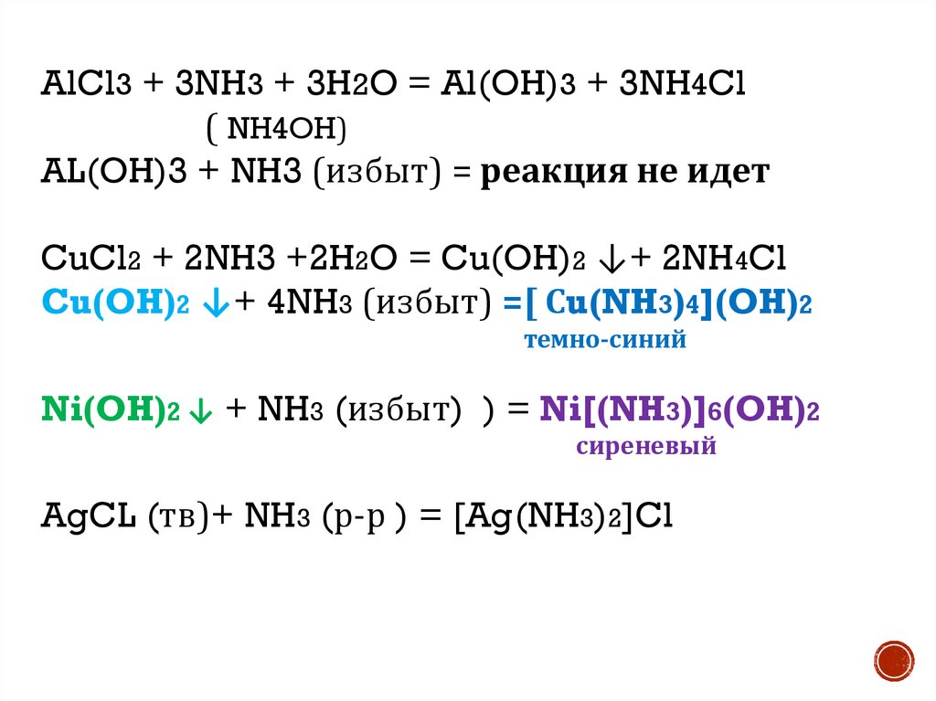 AlCl3 + 3NH3 + 3H2O = Al(OH)3 + 3NH4Cl( NH4OH)