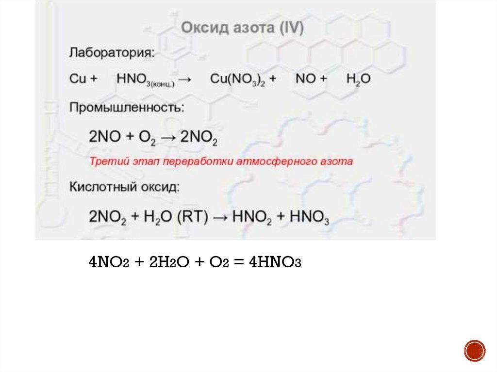 4NO2 + О2 + 2H2O ↔ 4HNO3