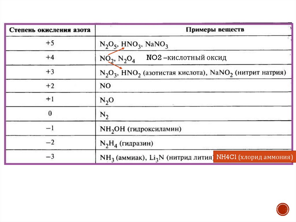 NO2 –кислотный оксидNH4Cl (хлорид аммония)