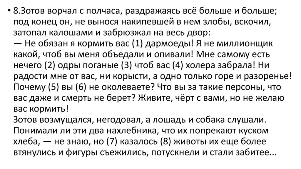 хлеба, — не знаю, но (7) казалось (8) животы их еще более