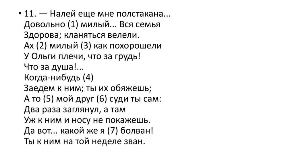 • 11. — Налей еще мне полстакана...Довольно (1) милый... Вся семья