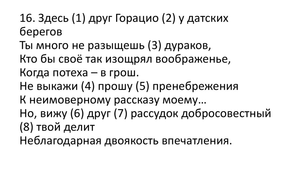 16. Здесь (1) друг Горацио (2) у датскихберегов