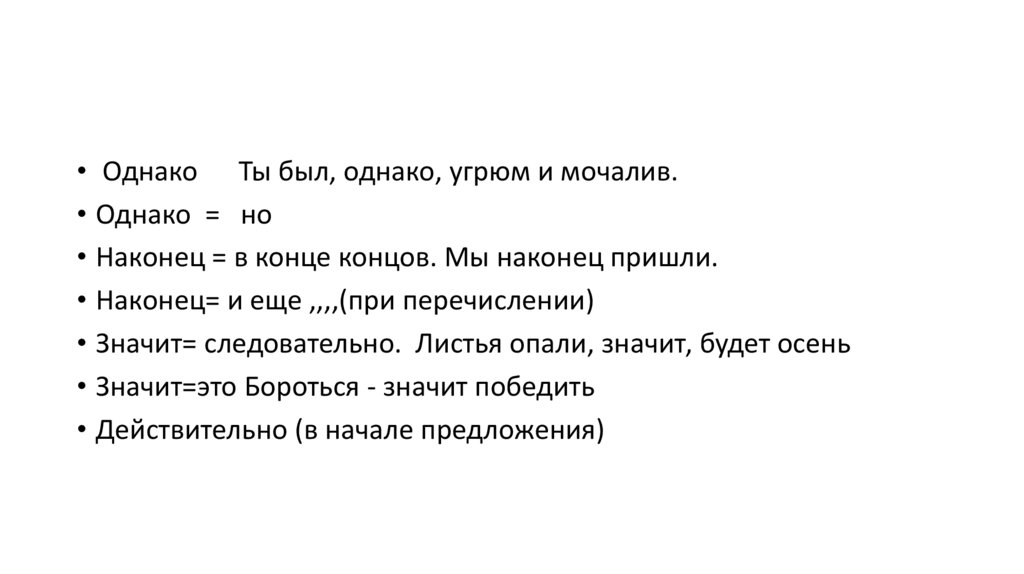 Итак, следовательно, к слову сказать, во-первых, во-вторых, с