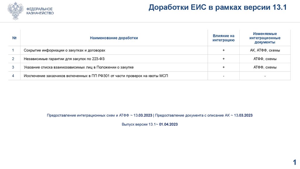 1. Доработки ЕИС в рамках версии 13.1