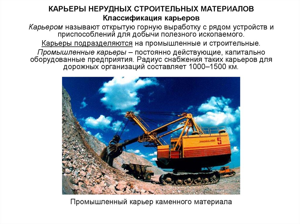 КАРЬЕРЫ НЕРУДНЫХ СТРОИТЕЛЬНЫХ МАТЕРИАЛОВКлассификация карьеров