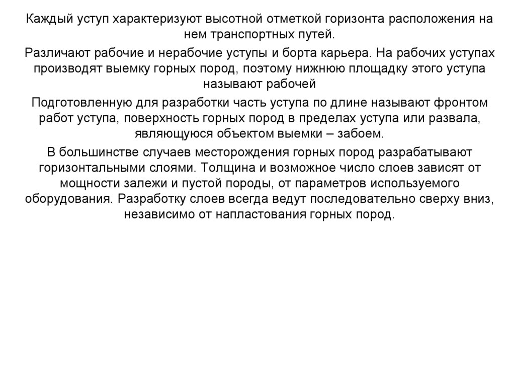 Карьером называют открытую горную выработку с рядом устройств и
