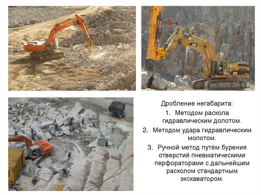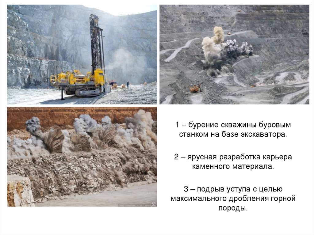 - месторождения, подвергаемые предварительному рыхлению (песчаник,известняк, гранит и пр.);
