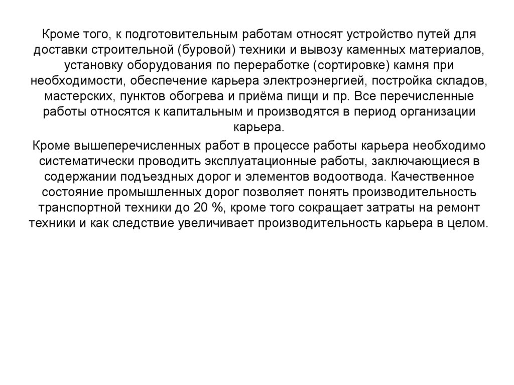 Промышленные карьеры – постоянно действующие, капитально