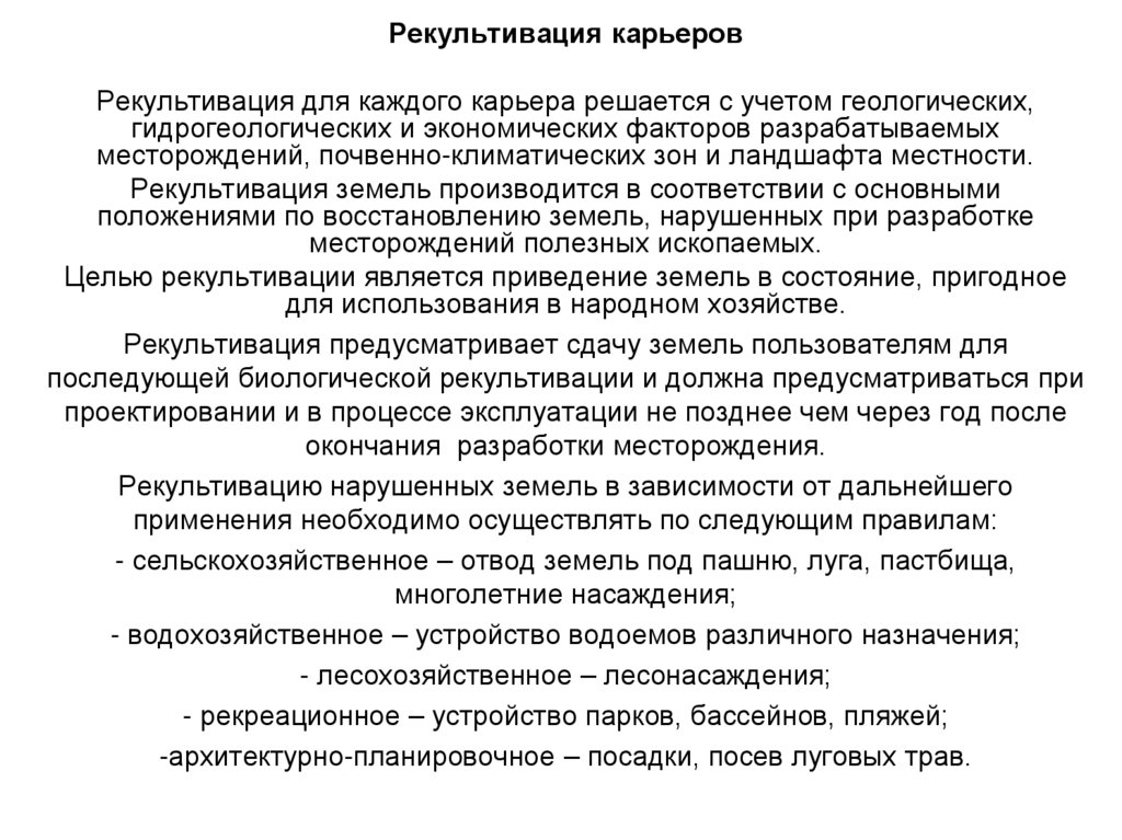 Строительные карьеры – предприятия временного типа со сроком
