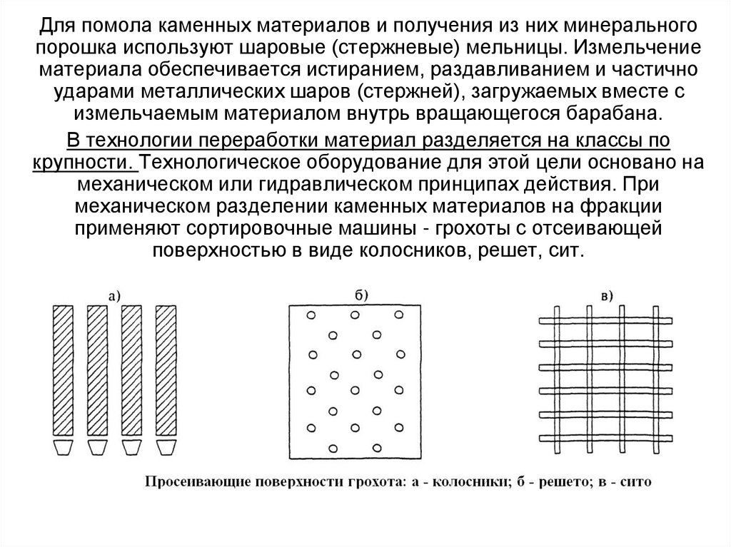 — измельчение минерального материала до требуемой тонкости помола;