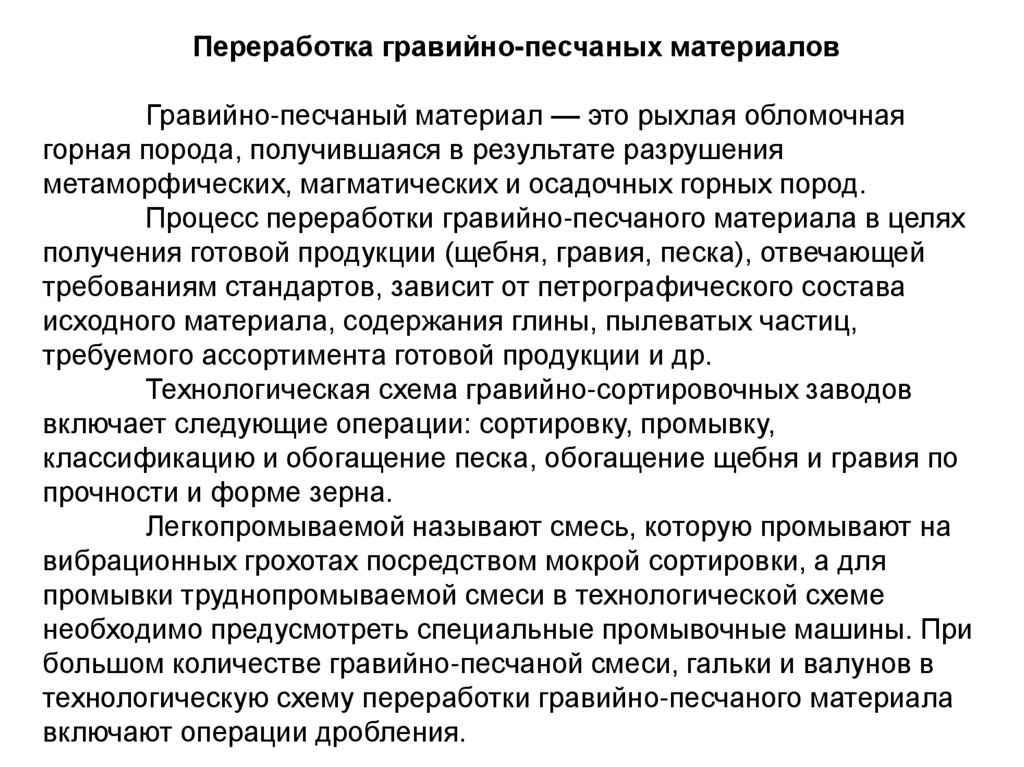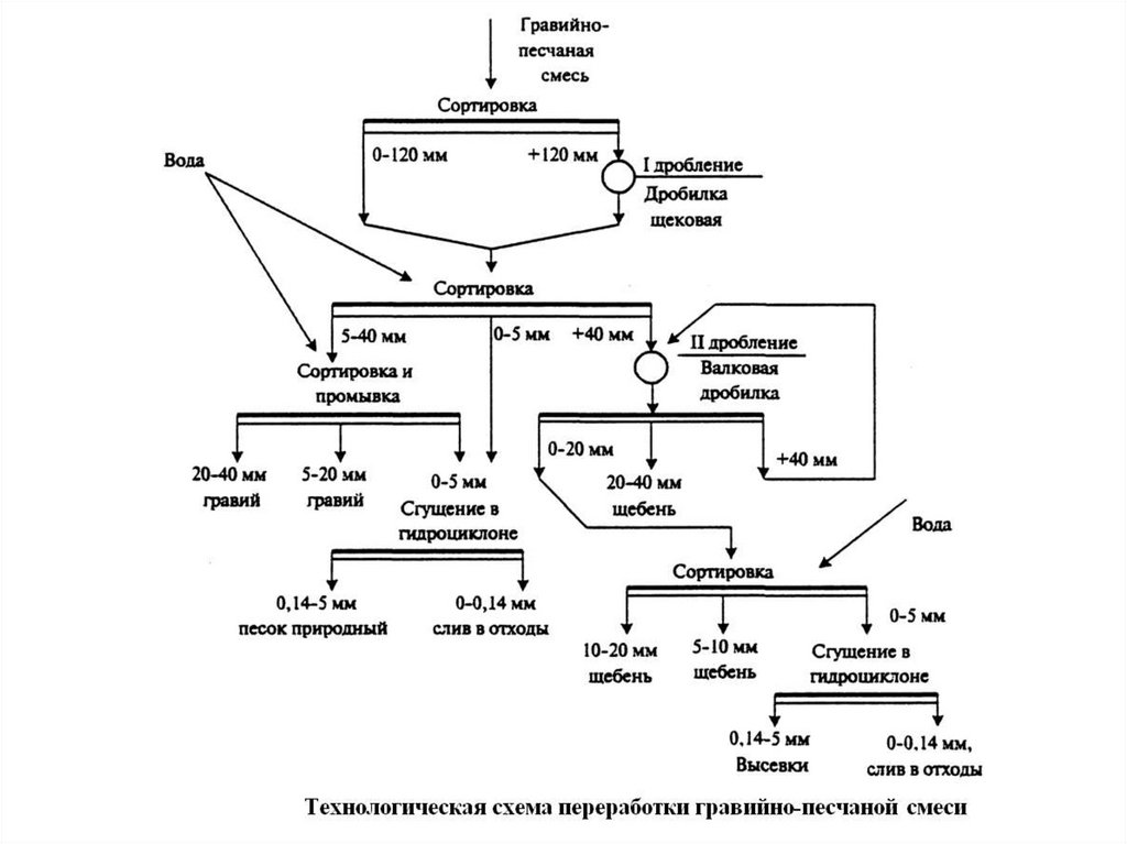 песчано-гравийные, гравийные);
