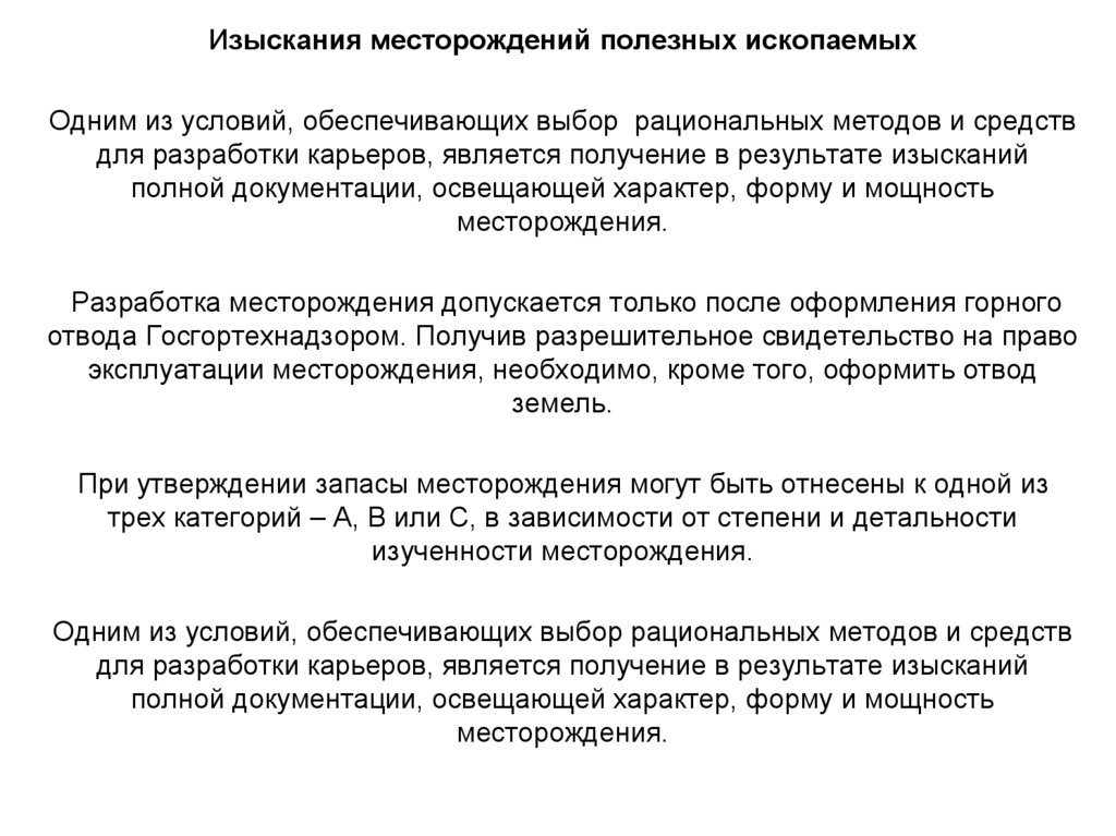 для разработки карьеров, является получение в результате изысканий