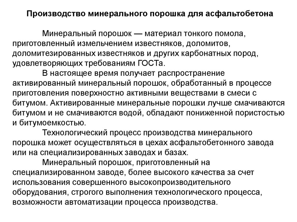 Технология приготовления активированного минерального порошка