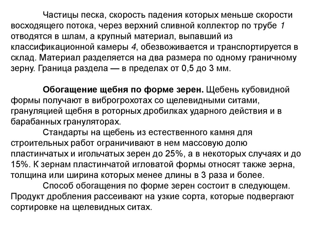 гидравлическая классификация, обогащение щебня по форме зерен,