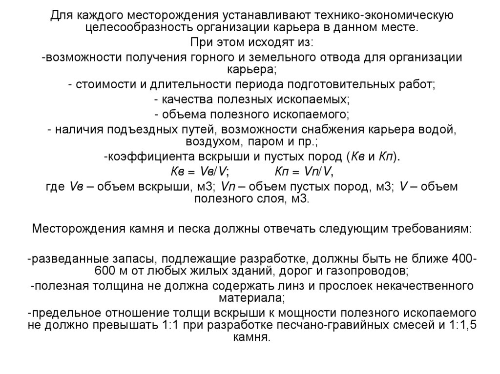 месторождений, его мощности, горнотехнических условий разработки. Они