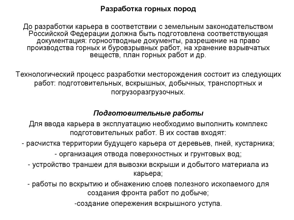 Разработка месторождения допускается только после оформления горного