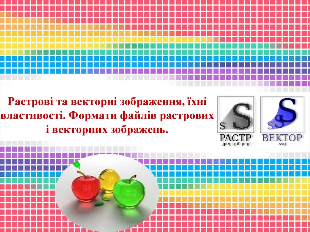 Растрові та векторні зображення, їхнівластивості. Формати файлів растрових