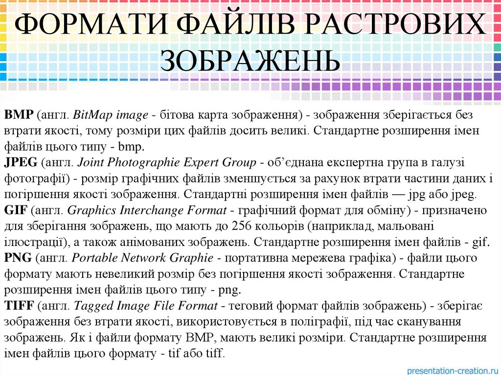 ФОРМАТИ ФАЙЛІВ РАСТРОВИХЗОБРАЖЕНЬ