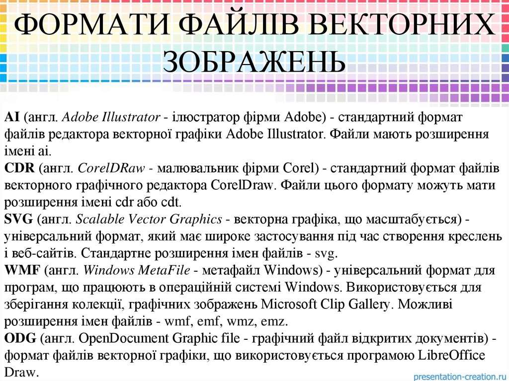 ФОРМАТИ ФАЙЛІВ ВЕКТОРНИХЗОБРАЖЕНЬ