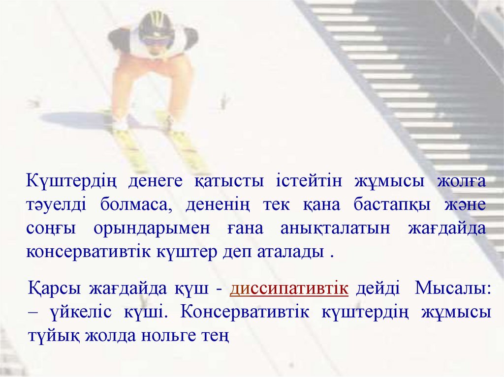 Қарсы жағдайда қүш - диссипативтік дейді Мысалы: