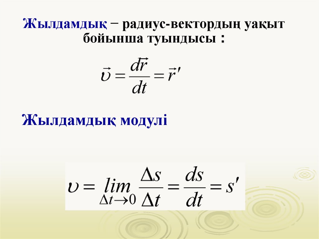 Жылдамдық − радиус-вектордың уақытбойынша туындысы :
