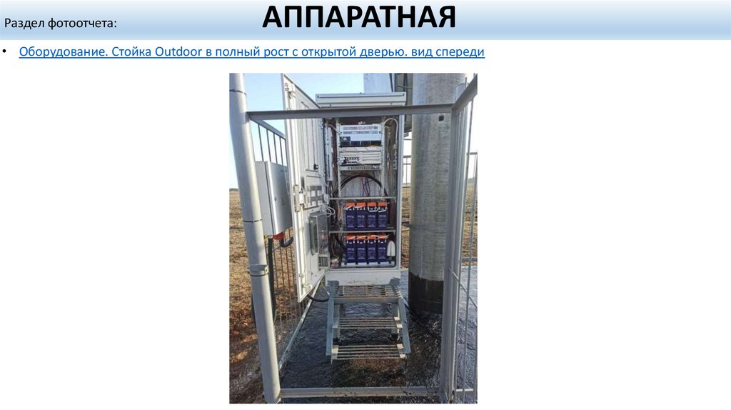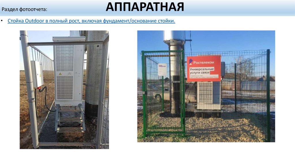 Нижняя часть АМС. На снимке должны быть полностью видны ограждение, стойка Outdoor. Фото скрытых работ с измерением габаритов (включая