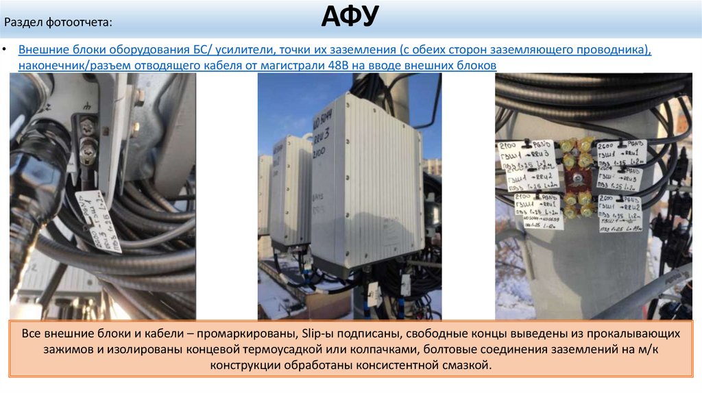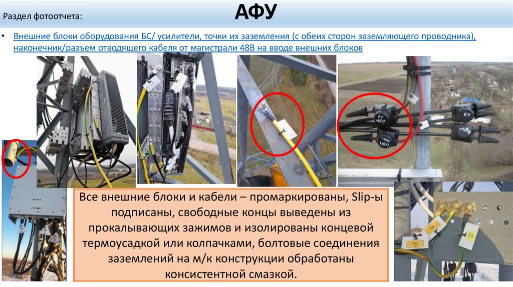 • Верхняя часть АМС. На снимке должны быть видны антенны, трубостойки, РРЛ, оборудование БС/ усилителиНа снимке должны быть видны