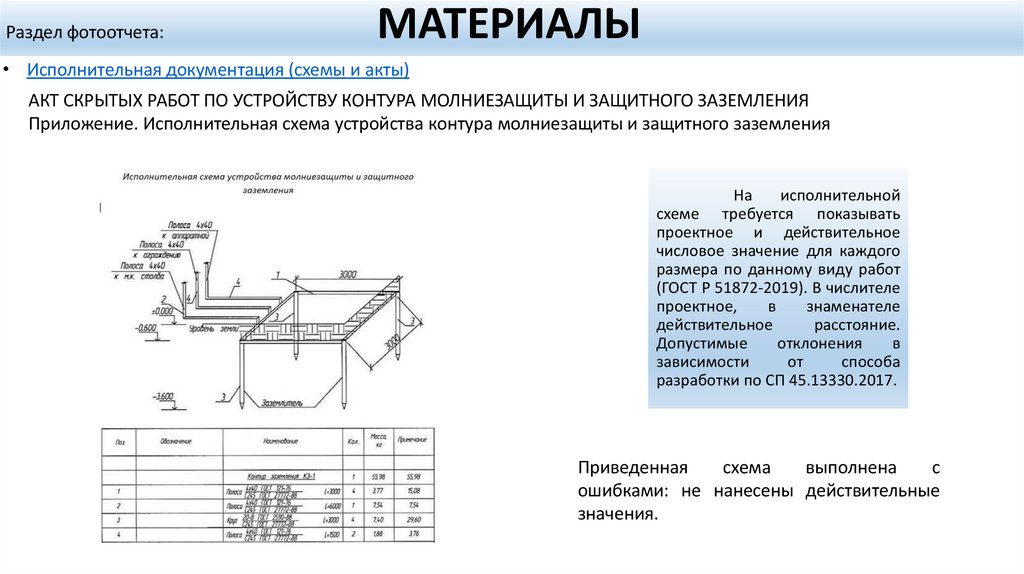 Приложение. Исполнительная схема устройства контура молниезащиты и защитного заземления
