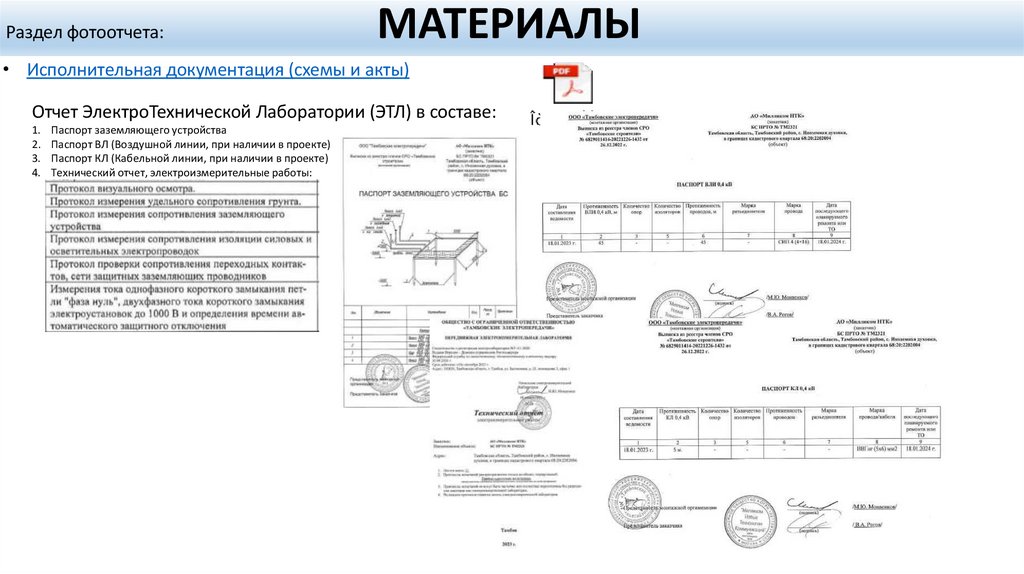 Технический отчет, электроизмерительные работы: