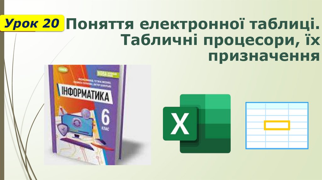 Урок 20 Поняття електронної таблиці.Табличні процесори, їх